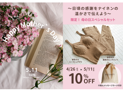 “温もりをまとう”ことができる唯一のニットランジェリーブランド「nainen(ナイネン)」を展開する株式会社 Hana Plan(本社:東京都渋谷区 代表取締役:花村 幸栄 以下ハナ プラン)は、母の日スペシャルギフトセットを発売します。