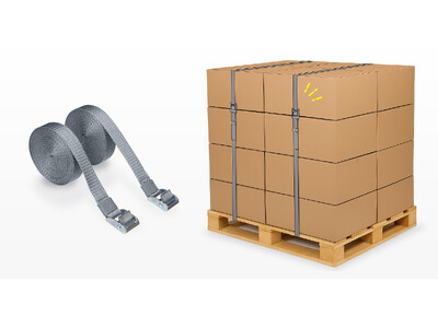 耐震度6強に対応、パレットからの積荷落下を防止するパレット荷締めベルトを発売
