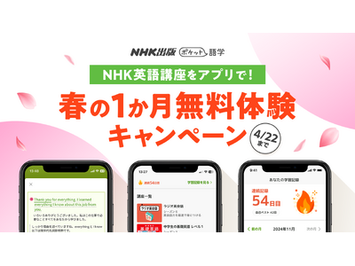 NHK英語講座は、ノーベル賞受賞者である山中伸弥教授、2024年本屋大賞を受賞した宮島未奈氏など、各業界のトップランナーの方々にご活用いただいてきました。絶大な人気を誇る「ラジオ英会話」やビジネス英語講座、大人の学びなおしに最適の基礎英語シリーズなど、入門から最上級レベルまで7講座を定額でご利用いただけます。「ポケット語学」では、通常7日間の初回無料体験期間を、1か月間に延長するキャンペーンを実施。申し込み期限は2025年4月22日(火)23:59まで。