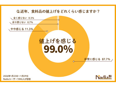 Nadia株式会社(東京都港区/代表取締役社長 葛城嘉紀)にて運営している料理メディア「Nadia(ナディア)」(URL:https://oceans-nadia.com/)は、食費の実態と食料品減税に関する意識調査(※1)を行いました。