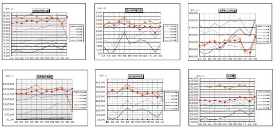 同期比95%、19年度比99%)、発着回数は46,553回(前年同期比93%、19年度比86%)と、いず