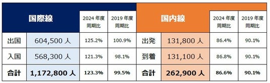日本人旅客数は92.4万人(前年同月比117%、19年同月比65%)となり、先月に続き、2019年同月