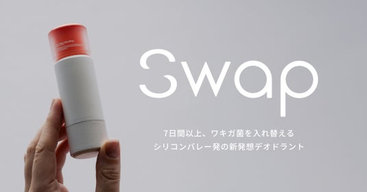 「Swap」は、ワキガ原因菌を無臭菌と置き換えるというTaxa独自の新しいメカニズムにより、わきのニオイを根本から長期間抑えることを目指した、アメリカ・シリコンバレー発の画期的なデオドラントです。