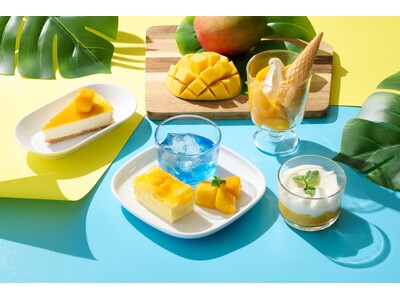 気軽かつお手ごろに南国気分を味わえるマンゴーデザートが登場。今年は、星形のナタデココ入りソーダゼリー、パインマンゴーケーキ、マンゴーチャンクの3種類を組み合わせたアソートプレートや、ムース状のクリームがたっぷり入ったマンゴータルトなど、爽やかな気分を味わえるスイーツをご用意しています。元気なオレンジ色と青色のコントラストで、トロピカルな南国の海やパラダイス をイメージし、見た目からも夏のワクワクを楽しめる、暑い夏にぴったりなスイーツが揃います。期間限定のスイーツで、南国の気分を満喫しませんか?