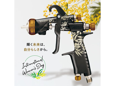 塗装業界における人手不足が問題視される中で、国際女性デーをきっかけに「塗装業界が、さらに様々な人が活躍できる業界になってほしい」という想いから、ミモザの花をあしらった記念モデルのスプレーガンをデザインしました。この特別な記念スプレーガンを通して、「輝く未来は、自分らしさから。」をモットーに自分らしい輝きを持つすべての人々を応援いたします。