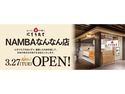 さて、この度、おにぎり専門店「にぎりたて NAMBAなんなん店」を、大阪市中央区に開設いたしますので、 ご案内申し上げます。