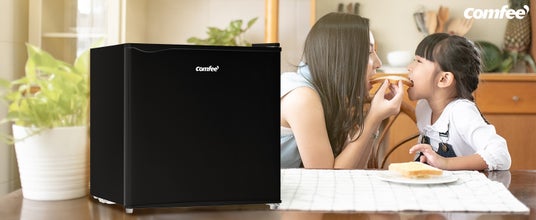 COMFEE'の45L冷蔵庫RCD45BL(E)は、コンパクトで静音設計。スタイリッシュなブラックカラーが魅力で、一人暮らしや寝室、オフィスにもぴったりの1台です。