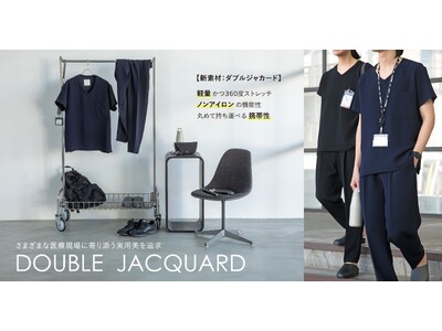テーラード技術を取り入れた白衣を中心に、メディカルアパレルの企画・製造・販売を行うクラシコ株式会社【創業:2008年 / 所在地:東京都港区 / 代表取締役CEO:大和 新(おおわ あらた)】は、シワになりにくい機能性と日常着に近いデザインを兼ね備えた「Double jacquard(ダブルジャカード)」シリーズを完全新作として発売いたします。