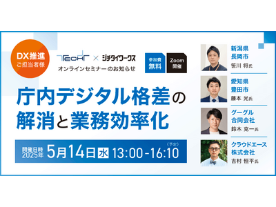 一般社団法人自治体DX推進協議会(GDX、以下「当協議会」)は、当協議会の賛助会員である株式会社マイナビ(マイナビニュースTECH+)および株式会社ジチタイワークスが共同で開催するオンラインセミナー「庁内デジタル格差の解消と業務効率化」に協力します。