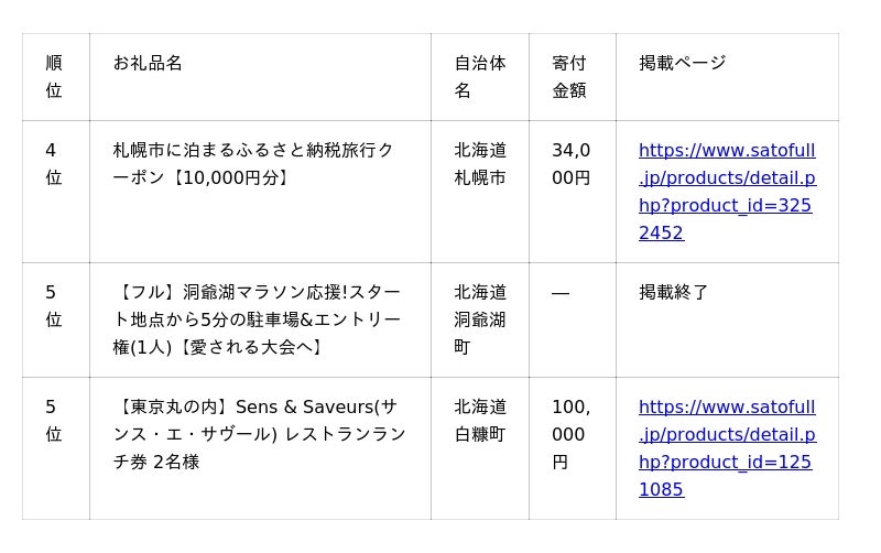<北海道版>2025年上半期ふるさと納税人気お礼品ランキング詳細は以下よりご確認ください。