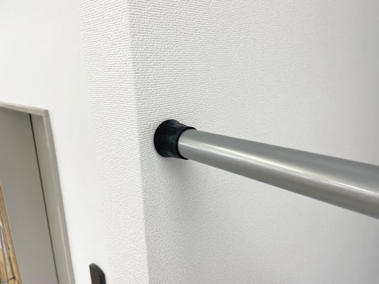 従来の突っ張り棒は、複数のパイプを伸縮させる機構のため長尺になると強度面に不安があることや突っ張る力が弱いなどの課題がありました。またカーテンレールとして使用する場合、継ぎ目やねじの凹凸があり、カーテンリングが引っかかるなどスムーズな開閉を阻害していました。