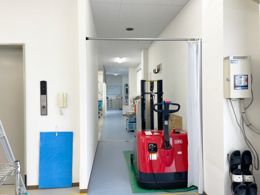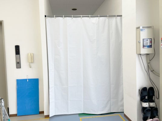 天井が高い空間の目隠しカーテン使用例2