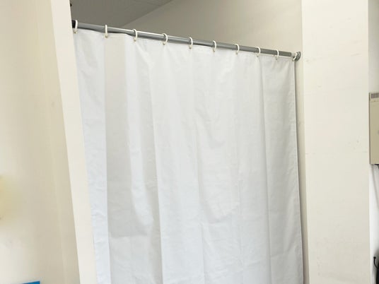 天井が高い空間の目隠しカーテン、賃貸物件、コンクリート壁、一時的に使用したいシチュエーションや洋服のハンガーパイプ、収納ラックなどアイデア次第でさまざまな使い方が可能です。