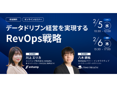 株式会社パワー・インタラクティブは、無料ウェビナー『データドリブン経営を実現するRevOps戦略』を、2月5日と2月6日に開催します。
