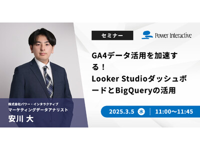 株式会社パワー・インタラクティブは、マーケティング部門の方を対象に無料ウェビナー『GA4データ活用を加速する!Looker StudioダッシュボードとBigQueryの活用』を3月5日に開催します。