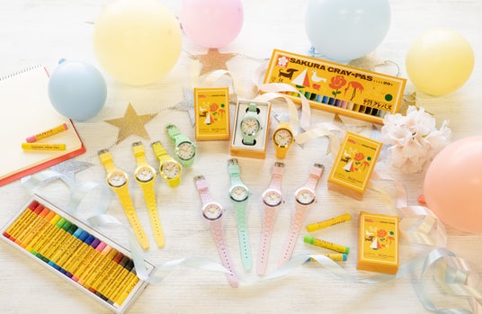 老舗文具メーカーサクラクレパスとタイムステーションNEOのコラボ腕時計「クレパス柄トケイ」は100色展開のカラフルでポップな腕時計です。