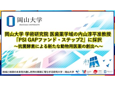 【岡山大学】岡山大学学術研究院医歯薬学域の内山淳平准教授が「PSI GAPファンド・ステップ2」に採択 ~抗菌酵素による新たな動物用医薬の創出へ~