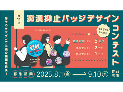 一般社団法人痴漢抑止活動センター(所在地:大阪市城東区、代表理事:松永弥生)は、2025年8月1日より「第11回 痴漢抑止バッジデザインコンテスト」の公募を開始いたしました。