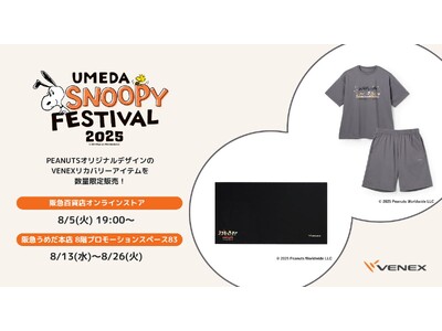 休養時専用の「リカバリーウェア」を開発、製造、販売する株式会社ベネクス(所在地:神奈川県厚木市、代表取締役:中村 太一、以下、当社)は、2025年8月13日(水)~8月26日(火)に開催される、阪急うめだ本店の夏の人気イベント「うめだスヌーピーフェスティバル」HAHAHA! HAPPINESS PEANUTSフェアに参加します。