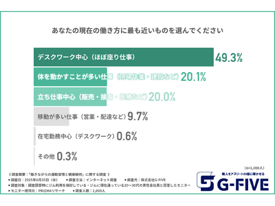 株式会社G-FIVE(所在地:静岡県富士市、代表取締役:岩邊 大樹)は、ジム利用を検討している・ジムに現在通っている20~30代の男性会社員を対象に、「働きながらの運動習慣と健康維持」に関する調査を実施しました。