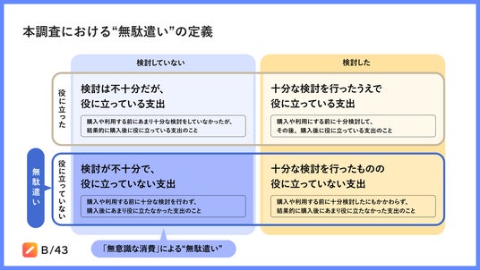 また、“無駄遣い”のうち、「検討が不十分で、役に立っていない支出」を、「無意識な消費」による“無駄遣い”と定義しています。