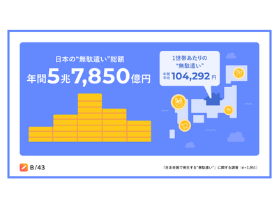 今回の調査によって、一般家庭の“無駄遣い”は日本全国で推計5.8兆円に達することが明らかになりました。この金額は、過去最高であった2023年の日本のインバウンド消費額(5.3兆円)に匹敵するほどの規模です。あらためて“無駄遣い”が可視化されたことで、消費行動の見直しが促進されることが期待されます。