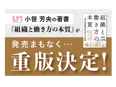 株式会社リンクアンドモチベーション(本社:東京都中央区、代表:小笹芳央、証券コード:2170、以下当社)は、4月15日(火)に発売した代表取締役会長 小笹芳央の新書籍『組織と働き方の本質 迫る社会的要請に振り回されない視座』が、発売から間もなく重版が決定したことをお知らせいたします。