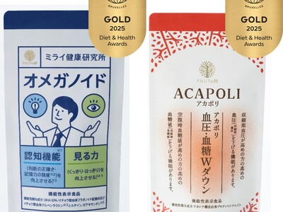機能性表示食品『アカポリ血圧・血糖Wダウン』、『オメガノイド』は、国際的な食品品評会であるモンドセレクション2025に出品され、優秀品質金賞を同時受賞しました。