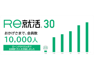 株式会社学情(本社:東京都中央区)が運営する[30代専門]転職サービス「Re就活30」(2024年10月30日ローンチ)は、会員数が<10,000人>を突破しました。「20代のときに、Re就活で転職した。Re就活シリーズで30代向けのサービスがあるのであれば、ぜひ利用したいと思った」「20代の転職を応援するRe就活の30代向けサービスなら、30代の転職ならではの不安や期待に適した情報を得られると思った」「30代向けのサービスは他にないので、広告を見て知ったときに嬉しくなった」といった声が寄せられています。多くの30代から支持を得ている媒体の特性を活かして、30代転職希望者と企業の価値あるマッチングを実現してまいります。