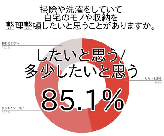 そこでアンケートでは、掃除や洗濯をしていて自宅のモノや収納を整理整頓したいと思うことがあるか尋ねました。