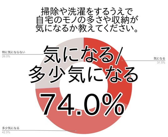 そこでアンケートでは、掃除や洗濯をするうえで自宅のモノの多さや収納が気になるか尋ねました。