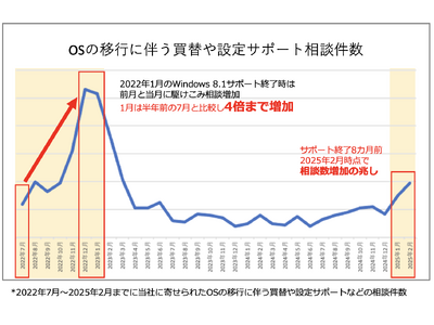 Windows 8.1サポート終了直前には、半年前と比較すると4倍以上もの相談が寄せられていることもあり、2025年10月に向け、さらなる駆けこみ相談増加が予想されるため、同時に適切な対処方法など注意喚起も行います。