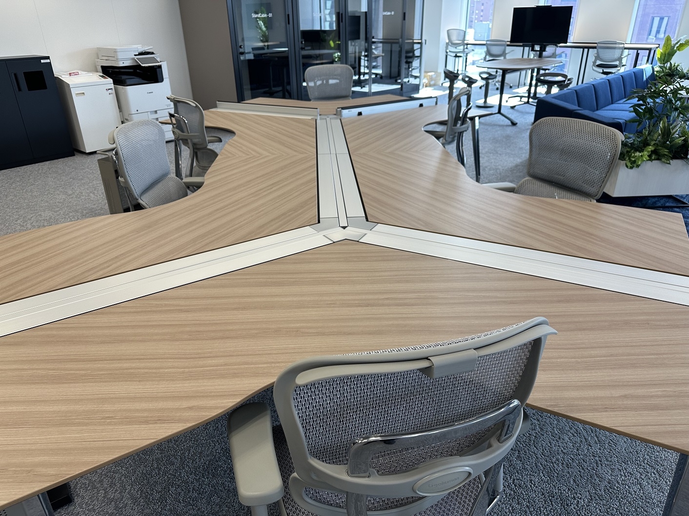 広さ約85坪に、集中ブースやさまざまなコミュニケーションスペース、セミナーエリアなどをコンパクトに配置し、ウェルネスにも配慮したデザインとしました。オフィスはガラス張りで全面見渡せ、開放的 で利用しやすい“訪問したい”と思っていただける「魅せるオフィス・集うオフィス」デザインを実現しました。