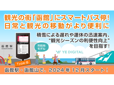 株式会社YE DIGITALが提供し、西鉄エム・テック株式会社(※1)が販売する「スマートバス停」が、この度、函館バス株式会社(本社:北海道函館市、代表取締役社長:森 健二、以下 函館バス)が運営管理する