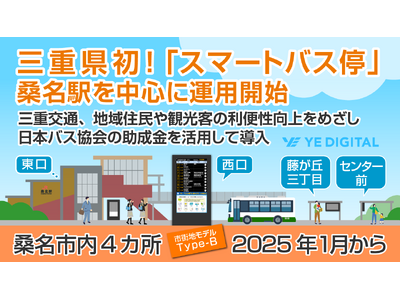 株式会社YE DIGITALが提供する「スマートバス停」が、三重交通株式会社(本社:三重県津市、代表取締役社長:田端英明、以下、三重交通)に採用され、2025年1月より運用を開始します。これにより、三重県内で初めて当社の「スマートバス停」が導入されることとなります。
