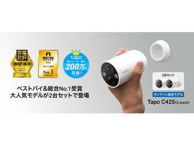 TP-Link Systems Inc.(所在:米国)の日本支社である※、ティーピーリンクジャパン株式会社(所在:千代田区外神田/以下TP-Link)は、フルワイヤレスセキュリティカメラ2台セット「Tapo C425(2-pack)」を、3月28日(金)よりオンライン限定で販売開始します。