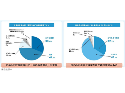 リ・プロダクツが実施したアンケート調査では、飲食店を選ぶ際に「店内の清潔さ」を重視する人が75.6%に上ることが分かりました。さらに、「飲食店が清潔なほど再訪意欲が高まるか」という問いには、80.5%が「清潔な店ほど再訪意欲がある」と回答しました。この調査結果は、飲食業界においてクレンリネス(清潔さ)の向上が顧客満足度や店舗に直結する重要な要素であることを示しています。
