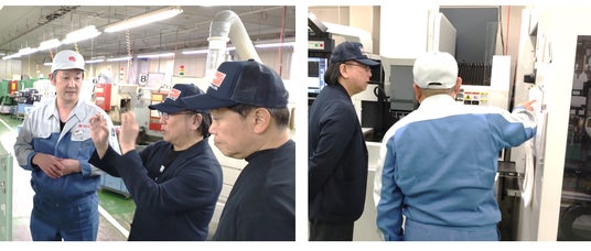 2024年12月、パンチ工業北上工場にて。ダイモン社 中島CEO、石原取締役が工場内を見学