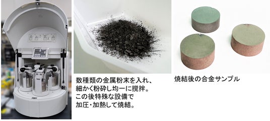 このうち、「焼結」の技術を用いて、軽量で耐摩耗性、耐熱性に優れた合金を開発し、YAOKI車輪周辺部品への使用を目指しています。金属素材は、主に特殊鋼の製造会社が生産しています。これら特殊鋼メーカーは大きな炉で大量生産し、量産を考慮しての合金設計となるため、必ずしもそれぞれの用途に最適な素材がラインナップされているとは言えない、という課題があります。月で使用する素材として、昼に110℃、夜は-170℃と200℃以上もの温度差に対応でき、かつ無重力空間という過酷な環境に耐える最適な素材の開発に向けて取組んでいます。