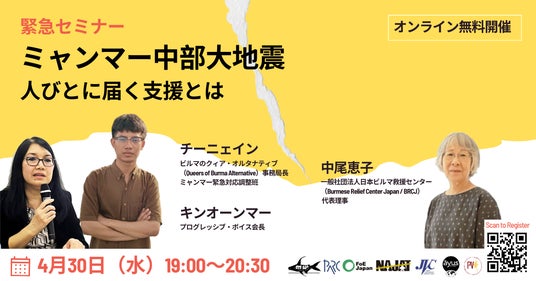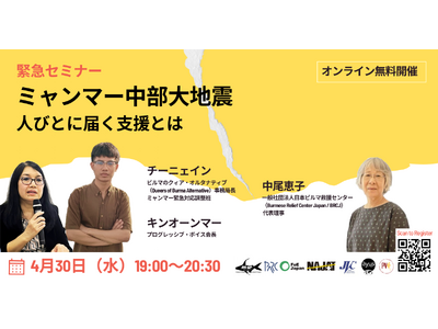 また、日本政府を含む国際社会は、どのようにミャンマー軍による災害支援の武器化を防ぎ、支援を必要としている人びとにそれを確実に届けるために行動できるのかにつき、ミャンマーの市民グループからの提言を伺います。