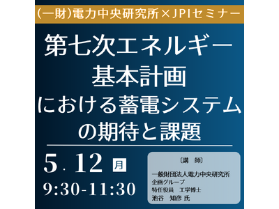 池谷 知彦 氏を招聘し、第七次エネルギー基本計画における蓄電システムの期待と課題について詳説いただくセミナーを開催します。