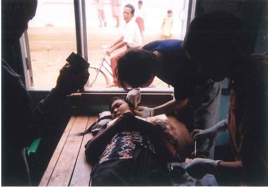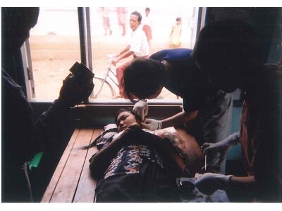 1995年ごろの単身ミャンマー活動当時。オペ台の代わりに木製テーブルを使う等、厳しい医療環境だった。