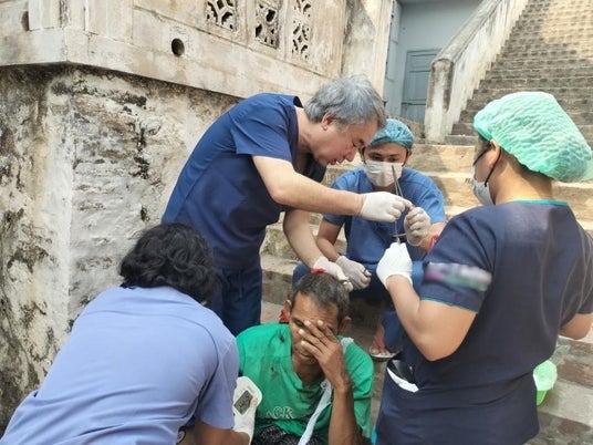 ミャンマー大地震発生直後、病院の外へ避難した人を治療する吉岡医師