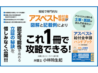 本書は、著者である小林 玲生起が、事務所のアスベスト救済業務を牽引してきた弁護士として、アスベスト被害者の方向け給付金制度について各制度の概要や申請方法、具体的な書類の書き方、必要書類の集め方などを解説しています。士業や医師の先生方はもちろん、自分で給付金の申請をしてみようという一般の方にもぜひお手に取っていただきたい一冊となっています。