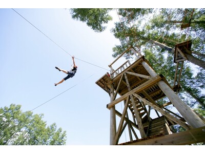 ハーネスを装着し、地上7~8mの高さに設置された様々なエレメントのコースを進むアクティビティです。仲間と助け合ったり、 タイムを計って競争したりしながら、ゴールを目指します。