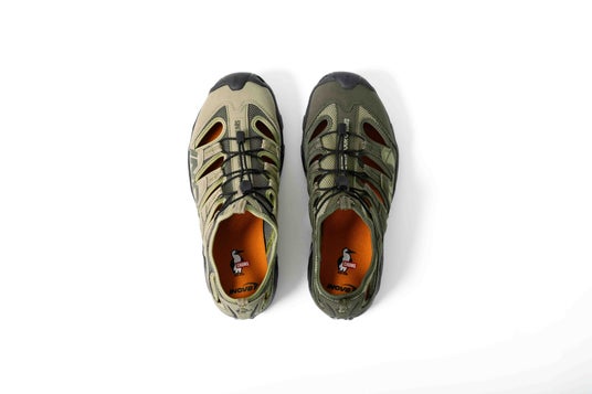 今回のコラボレーションモデルINOV8「RECOLITE 190 UNI」はレースのビフォー&アフターに着用するリラックス・サンダルとして開発された汎用性の高いモデル。わずか190g(27.0cm)と軽量ながらつま先やサイド部分に配した補強部材が、岩や石などの侵入を考慮した設計になっています。踵部分にヒールカウンターを搭載していないため、踵部分を踏んで履くことも可能な水辺、アウトドア、日常使いまで幅広く活躍するモデル。