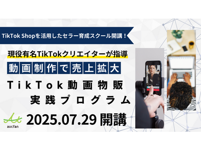株式会社オークファン(本社:東京都品川区、代表取締役:武永 修一)では、TikTok Shopでのショート動画を活用して販路拡大を目指す物販セラー向けの新スクール『aucfan presents ―TikTokショート動画物販 実践プログラム―』を7月29日(火)より開講します。それに伴い、7月17日(木)より事前説明会を随時開催します。