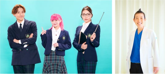 (左から)こもり校長、アンジー教頭、COCO教頭、産婦人科医・高尾美穂先生