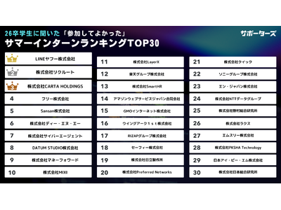 株式会社CARTA HOLDINGSのグループ会社で、国内最大級のエンジニア学生のデータベースを持つ株式会社サポーターズ(東京都港区、代表取締役:楓 博光)は、2026年卒業予定の学生を対象に調査を実施し、「参加してよかったエンジニアサマーインターンシップランキング2025」を公開しました。本調査は、企業がエンジニア向けのインターンシップを企画する際の参考として活用し、学生にとって実りあるインターンが増えることを目的としています。今年で4度目の実施となり、今後も継続的な調査を実施する予定です。(2024年度の調査結果は、