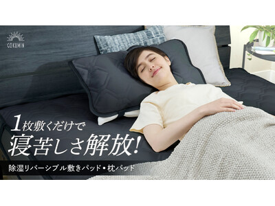 』を新発売いたします。1枚敷くだけで湿気対策ができ、梅雨や夏の寝苦しさだけでなく、秋冬の結露や寝汗にも対応可能な通年仕様。冷感と除湿を1枚に融合させた、GOKUMINならではの新発想の敷きパッド・枕パッドです。